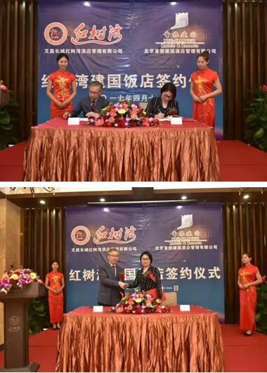 首旅建国与文昌红树湾的正式合作签约仪式于2017年4月11日在海南文昌顺利举行。首旅建国酒店管理公司业务发展部总经理刘刚与文昌红树湾航天主题酒店管理有限公司董事长敖宏女士签署正式合作协议。文昌市副市长吴宗森先生、首旅建国荣誉董事长付天祝先生莅临签约仪式。红树湾建国酒店将成为“建国”品牌在海南的第5家管理酒店,“建国”品牌在海南稳步拓展,开枝散叶。