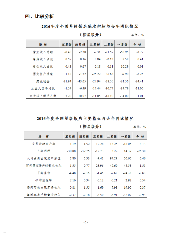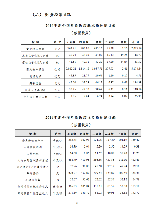 其中,2016年度全国星级饭店营业收入总额为2027.26亿元,利润总额为4.71亿元。客房和餐饮分别占营收比重为44.79%、41.30%。