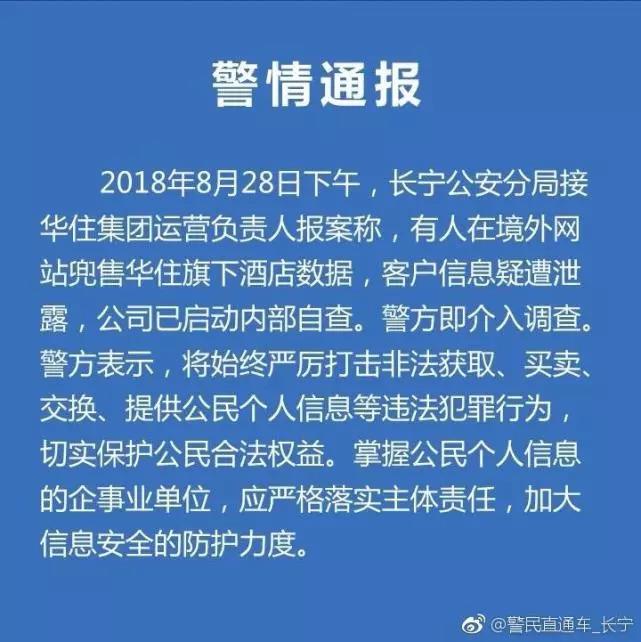 华住旗下酒店信息数据泄露 上海警方已介入调查